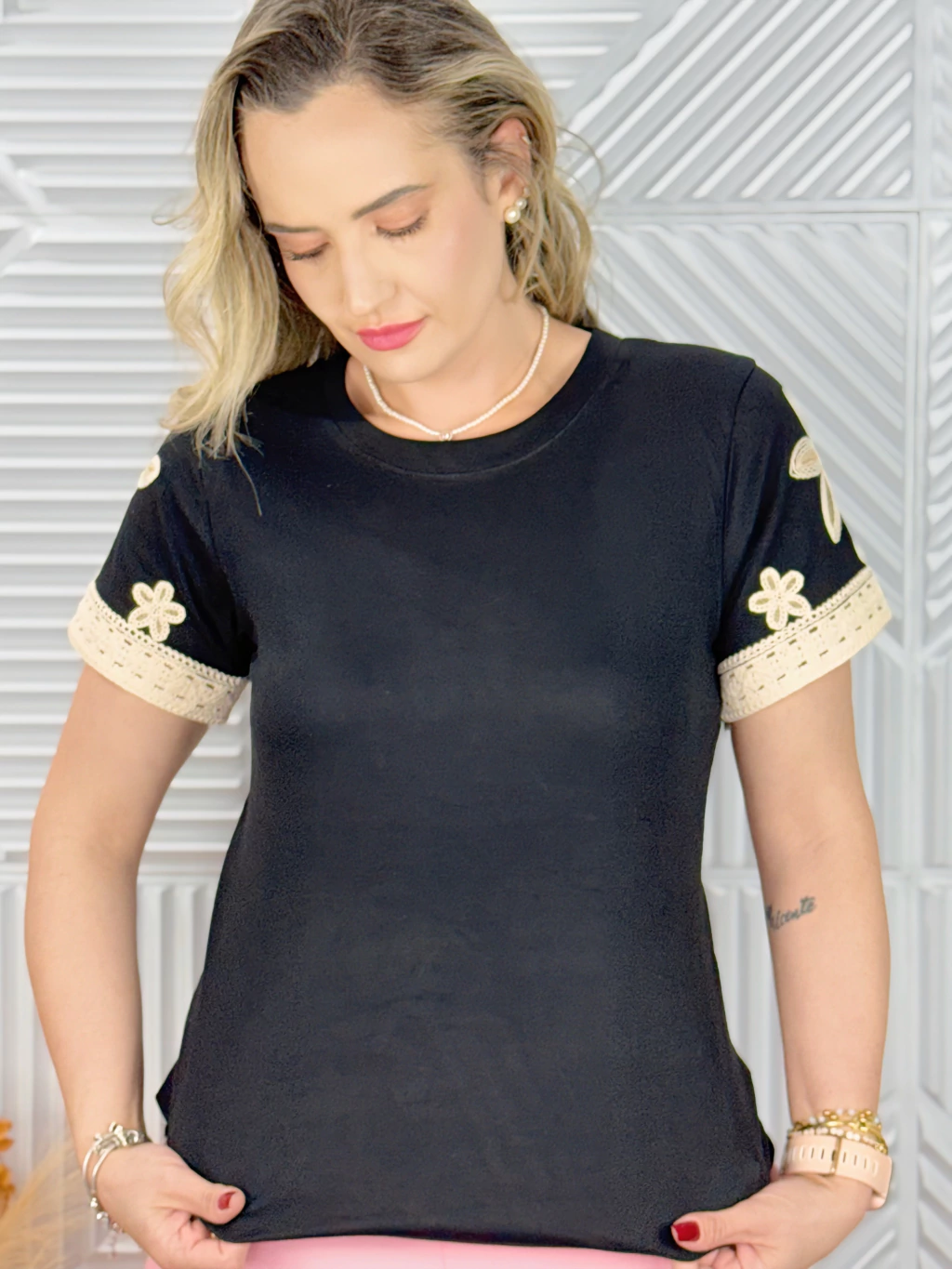 Confeccionada em malha importada, a Blusa Clara entrega conforto absoluto aliado a um toque de sofisticação. Seu design minimalista ganha destaque nas mangas, com aplicações delicadas e acabamento artesanal que elevam a peça a outro nível.